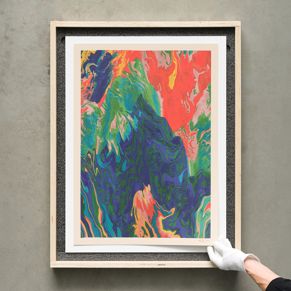 In terms of my art practice, I often focus on subjects such as randomness, emergence, and infinity, and like to decode and deconstruct complex subjects into approachable and playful systems. I find an elegance in semi-autonomous and generative systems, and try to bring this to the forefront in my work. I often highlight the real-time nature of these systems, or create interactive controls to allow audiences to better understand the underlying processes involved. I also have an avid interest in analog artistry such as printmaking, bookbinding, weaving, and other traditional crafts, as I see similar processes and parallels between these systems and the digital algorithms I am coding. In much of my work, I lean on nature as a point of inspiration—naturally complex and emergent systems like coral reef growth, hydraulic erosion, reaction diffusion, etc. serve as a sublime standard for my own algorithms to strive toward.